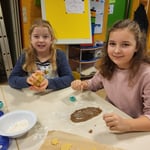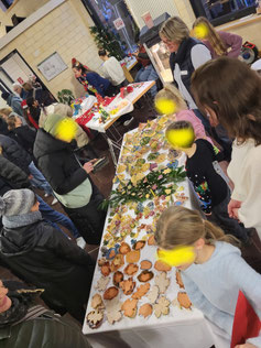 Die Klasse 4b stand heute, ausgestattet mit viel gespendetem Teig ihrer Eltern, Nudelhölzern und mit Streuseln 'bewaffnet', in der Schulmensa und war bereit in den kommenden vier Stunden wie die großen Bäcker zu arbeiten. Sie haben sich mächtig ins Zeug gelegt und das Ergebnis kann sich sehen und schmecken lassen. Zunächst wurde fleißig ausgerollt und ausgestochen. Tannenbäume, Elche, Sterne, Lebkuchenmänner oder auch Dinos und Eichhörnchen fanden ihren Weg in den Backofen. Nach einer kurzen Verschnaufpause wurden unzählige Plätzchen glasiert und mit mal mehr oder weniger viel Streuseln dekoriert. Nun heißt es - lasst es euch schmecken!