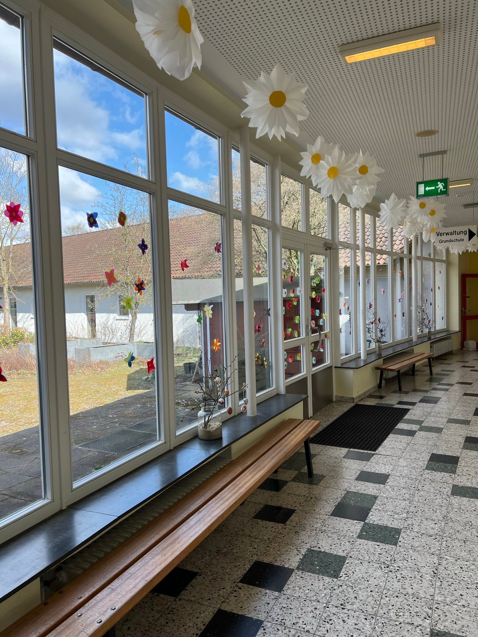 Unsere Schule hat die Winterzeit nun vollständig verbannt: Alle Fenster laden zum Lächeln ein, denn sie sind jetzt frühlingshaft geschmückt - ein gelungener Vormittag!