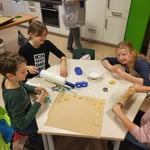 Vom 01. - 03. November waren die Landfrauen zu Gast bei den 3. Klassen. Rund um das Thema "Geflügel und Ei" wurde in der Schule drei Tage lang fleißig gekocht und gebacken. Mit viel Freude zauberten die Kinder in Gruppen Gerichte wie Eiersalat, Nudelauflauf, Brötchen, Hühnersuppe, Pudding oder Amerikaner. Passend zur Einheit "Gesunde Ernährung" im Sachunterricht wurde aber auch inhaltlich etwas gelernt. Mittags konnten sich die Drittklässlerinnen und Drittklässler mit dem Essen der selbst zubereiteten Speisen belohnen.