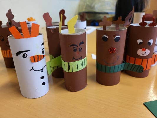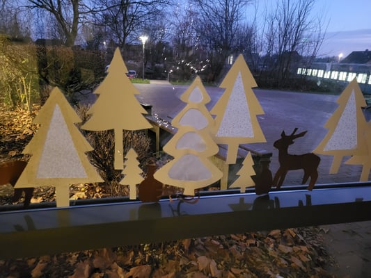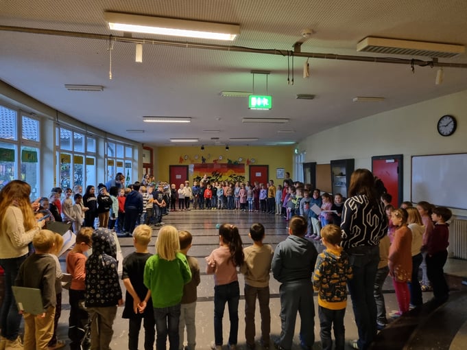 Der erste und zweite Jahrgang trifft sich momentan montags in der Pausenhalle zum gemeinsamen Singen. Dieses Jahr werden 'O Tannenbaum', 'Rudolph hat es eilig' und 'Wieder kommen wir zusammen' gesungen.