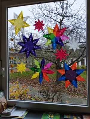 Der diesjährige Winteraktionstag am letzten Montag stand unter dem Motto "Weißt du, wie viel Sternlein stehen?", aber eigentlich haben alle Klassen auch den Adventsbasar im Fokus gehabt. Trotzdem wurde das Thema "Sterne" in vielfältiger Form und mit reichlich Kreativität umgesetzt.