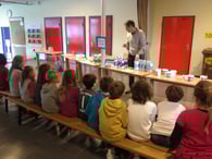 Im Musikraum lief ein Film von Willi will‘s wissen: „Und die Kuh sagt Muh dazu“. Wir mussten oft lachen, denn Willi ist so witzig! Aber er kann gut erklären, wie Joghurt gemacht oder wie die Milch haltbar gemacht wird.