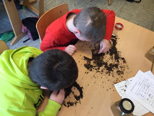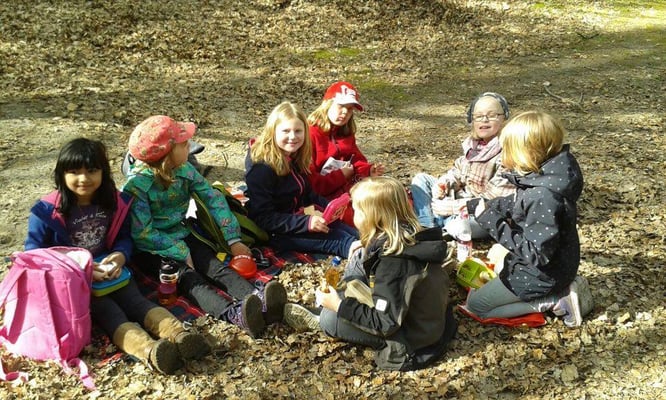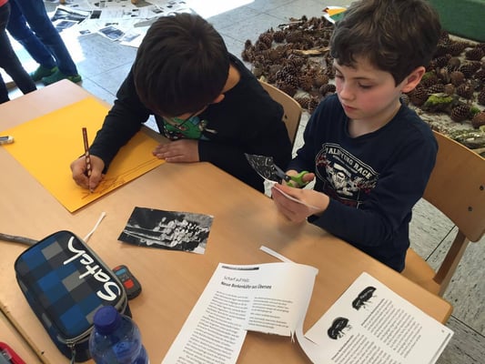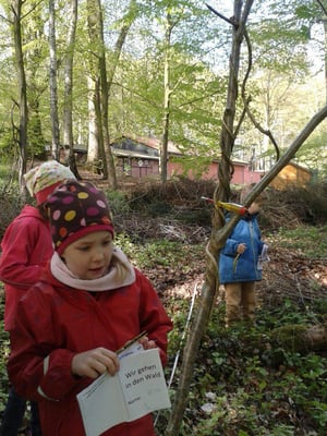Die 1. und 2. Klassen verbrachten den Tag im Wald nahe des Kurparks. Dort erforschten die Kinder mit Hilfe ihres Waldbuches Bäume, Tiere und die Umgebung. Dabei wurden alle Sinne gefordert und geschärft.