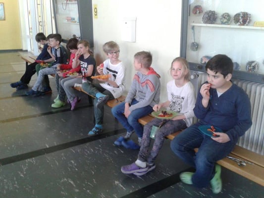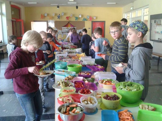 Die 3. und 4. Klassen haben sich in der Schule mit vielen unterschiedlichen Themen befasst. So wurden die Tiere des Waldes, die Gefahren im Wald und Singvögel erforscht oder man konnte sich mit Bodenlebewesen und den Pflanzen beschäftigen. In der Pause gab es ein großes gesundes Buffet in der Pausenhalle.