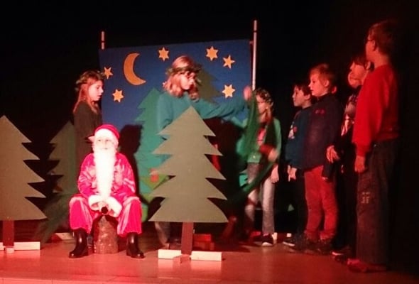 Kurz vor Weihnachten führten wir - die Klasse 4c - im Forum das Musical „Der Weihnachtsmann macht Urlaub“ den anderen Kindern der Schule vor. Etwa vier Wochen zuvor haben wir in der Klasse die Rollen verteilt, die Lieder geübt und begonnen, unsere Texte zu üben. Nach und nach haben wir mit Frau Buch kleine Szenen im Klassenraum geübt und im Kunstunterricht die Kulissen gestaltet. Auch im Musikunterricht probten wir fleißig für unseren großen Auftritt und bauten verschiedene Musikinstrumente in unsere Lieder ein. Unsere Generalprobe fand dann bereits im Forum auf der großen Bühne statt. Der Chor musste nun lernen, bei den Liedern rechtzeitig auf die Bühne zu kommen und anschließend die Bühne wieder zu verlassen. Am Tag der Generalprobe dachten wir noch, dass wir das nie hinbekommen würden, doch einen Tag später bei unseren beiden Aufführungen vor den anderen Schulkindern klappte das Meiste ganz wunderbar. Da wir jede Rolle zweimal besetzt hatten, haben wir das Musical auch zweimal aufgeführt, so dass jeder beide seiner Rollen einmal spielen konnte. Der grandiose Applaus nach den Vorstellungen bestätigte unsere viele Arbeit, die wir in das Musical gesteckt hatten. Auch unsere Eltern waren bei unserer Weihnachtsaufführung ganz gerührt und begeistert.
