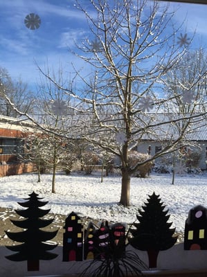 Väterchen Frost und Frau Holle haben in den letzten Tagen ganze Arbeit geleistet. Unser Schulgelände hat sich in ein wahres Winterwunderland verwandelt. Überall glitzert der Schnee und das Eis. Es ist wirklich knackig kalt draußen und die Kinder kommen zwar mit rotgefrorenen Näschen, aber auch mit glänzenden Augen aus den Hofpausen zurück.