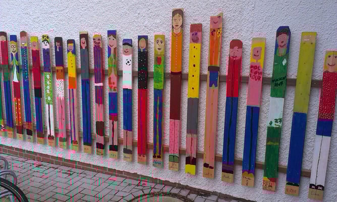 Anfang vorletzter Woche gab es für die Schülerinnen und Schüler der 4b ein „böses Erwachen“ bzw. einen sehr unerfreulichen Wochenbeginn. Sie entdeckten mit großer Betroffenheit, dass die farbenfrohen Zaunlatten, (die nun nach langem Warten endlich beim Haupteingang montiert wurden) von Unbekannten auf übelste Weise mit obszönen Schmierereien und Schimpfwörtern bekritzelt waren.
